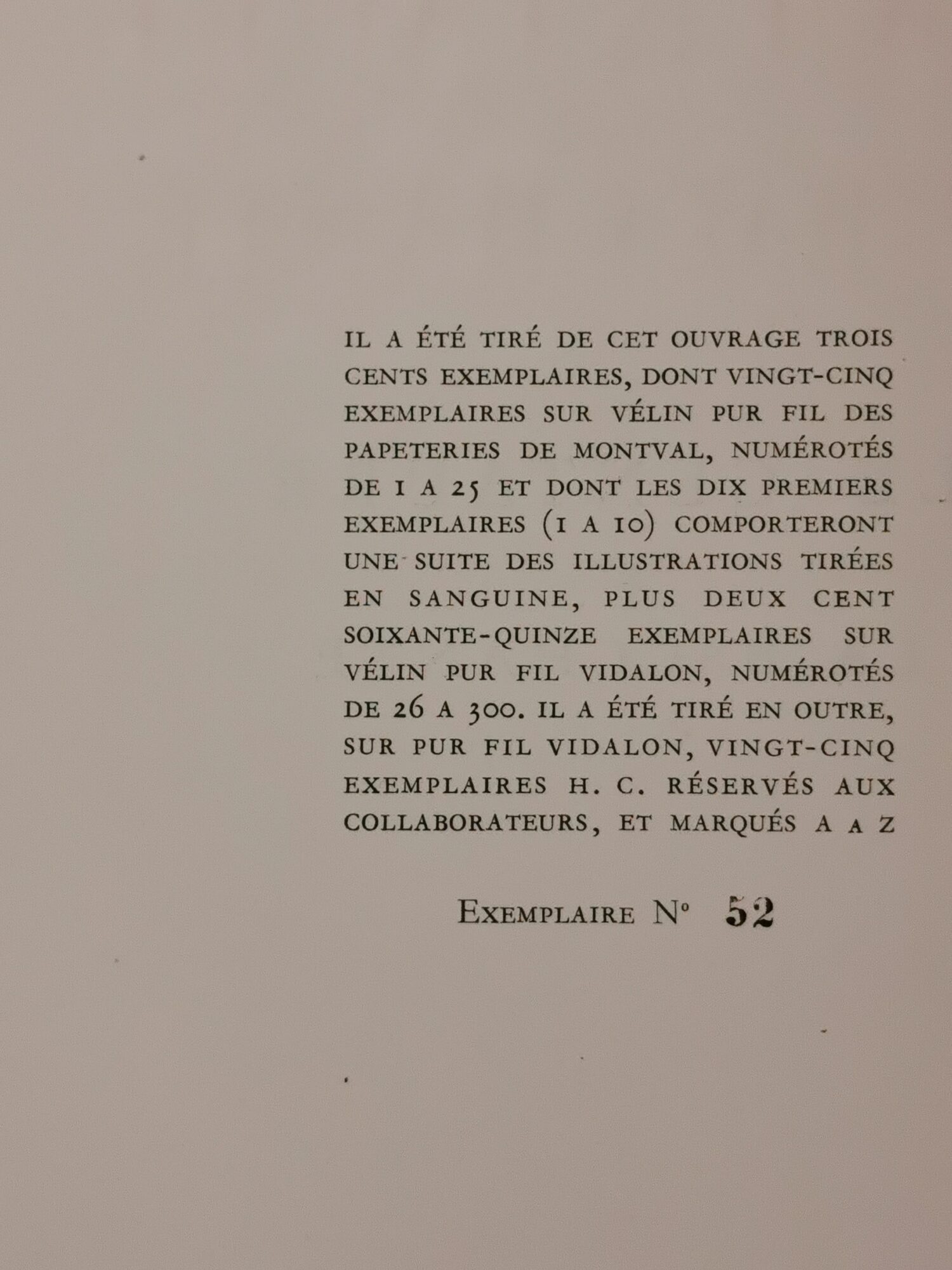 Exemplaire n° 52 / 300.